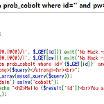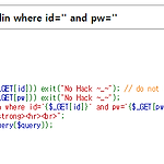 이 문제에는 앞의 id 가 guest로 고정이 되어있고 no 만 입력을 받고 있네요 그럼 or 을 적절히 활용하여 앞 부분을 거짓으로 만들고 뒷 부분을 id에 admin을 넣어 참이 되도록 하면 될 것 같습니다 그래서 아래와 같이 적어줬는데 문자열이 막혀있군요 ?no=123123 or id='admin' 여기서 no에는 guest의 no 값과 같아지지 않게 하기위해 아무런 값이나 넣었습니다 이럴때 문자열을 16진수로 나타내주면 이 16진수 값을 문자열로 읽어 간다고 합니다 아스키코드로 a 0x61 d 0x64 m 0x6D i 0x69 n 0x6E 이므로 모두 조합하면 admin은 16진수로 0x61646D696E 따라서 ?no=123123 or id=0x61646D696E 위와 같이 적어주면 됩니다!